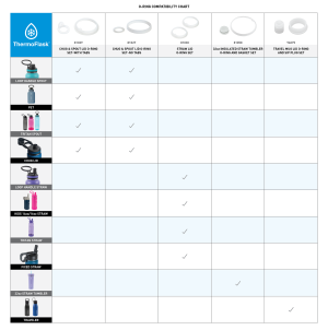 Fits all ThermoFlask® Chug Lids and Spout Lids. Two O-Rings are included in the pack. One large O-Ring (with tabs) fits inside the lid while a smaller O-Ring fits in the drinking spout cap while also being BPA free.